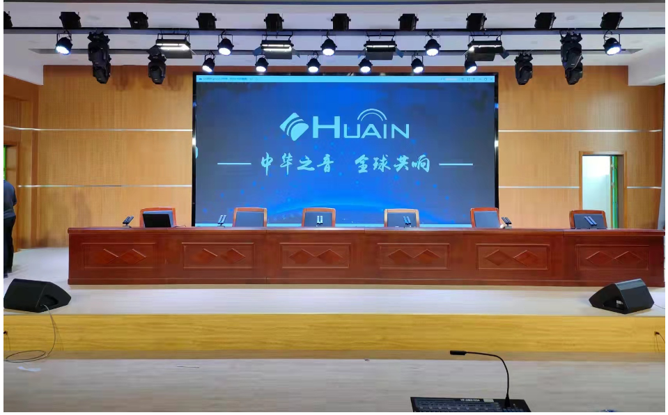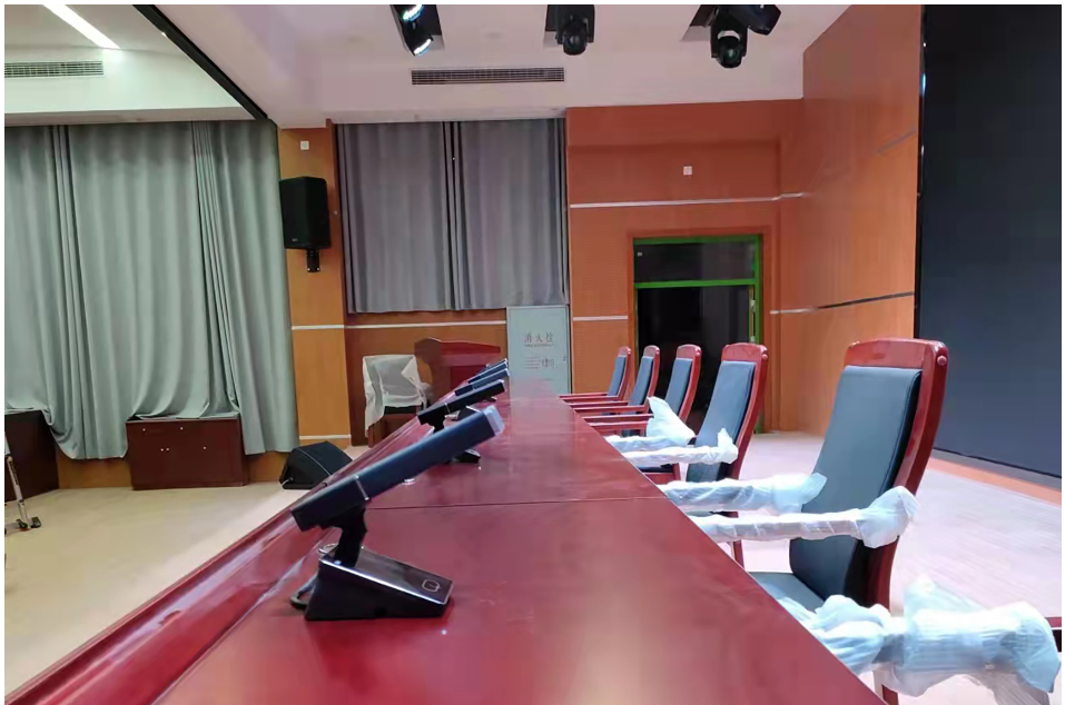湖北省某實驗中學使用HUAIN華音會議系統升級報告廳,為呈現高保真音質,使報告廳從演講臺到觀眾席擴聲聲音清晰,聲場均勻,經過工作人員現場勘察,最終選定雙振膜觸控式會議單元HY-6320系列作為發言使用。