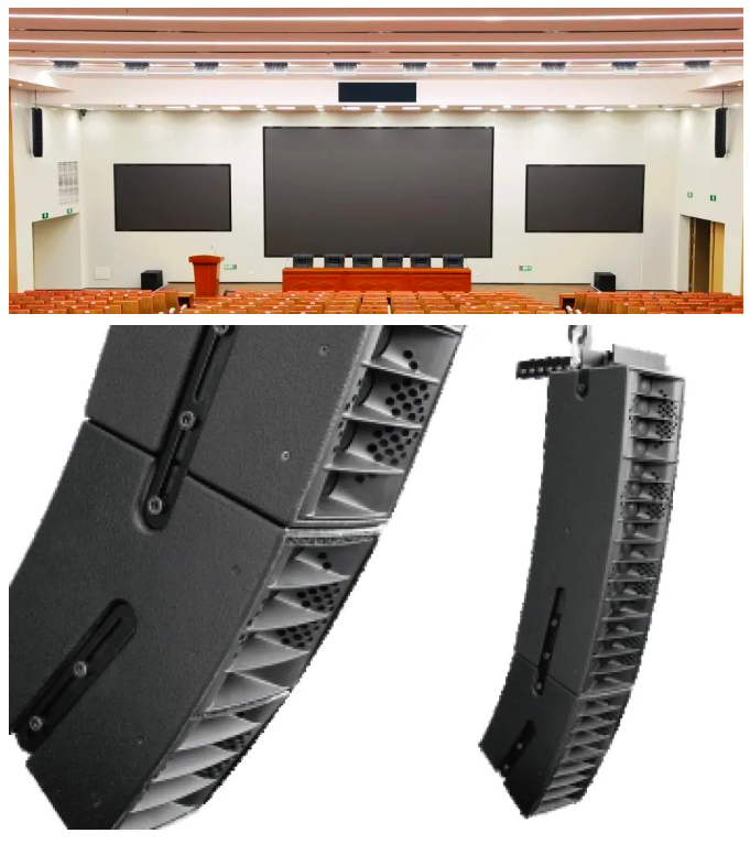 主擴是由兩個GL8c與4個GL8i組成的柱體式線性陣列揚聲器,僅19厘米寬的箱體,也能保證高清晰度聲音還原和高質量音樂重放,非常適合如報告廳這種需要遠距離傳播的環境中使用,最終效果讓人滿意。