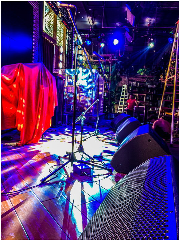 5只JBL PRX815W 15寸有源一體化智能揚聲器作為舞臺監聽, 8只SAL的A6全頻揚聲器根據聲場覆蓋,均勻布置在餐吧各區區域。