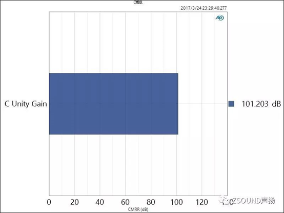 共模抑制比(CMRR)是指差分放大器對同時加到兩個輸入端上的共模信號的抑制能力,代表了平衡放大電路(由差分電路組成)的平衡度,當完全平衡時,信號傳輸過程中感應(yīng)到的外界噪音可以得到最大的抑制。這個指標的數(shù)值越高越好,一般能達到60 dB已經(jīng)很不錯了。