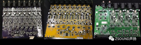 通過上述測試對比,我們可以基本判斷,在各項性能上,C的指標最高,A其次,B型號最低。這些指標對用戶的意義是什么呢?——是音質(zhì)的差別,而這背后是電路設(shè)計和電路元器件的選用上差別。對于數(shù)字調(diào)音臺來說,話放的電路設(shè)計和元器件選用,A/D、D/A轉(zhuǎn)換芯片,這些很大程度上決定了其性能。入門級的調(diào)音臺為了實現(xiàn)大眾化的價格,往往不得不在音質(zhì)和成本之間折中。我們分別將手頭的3個型號的調(diào)音臺的進行拆機,分別看看其電路設(shè)計和元器件用料。