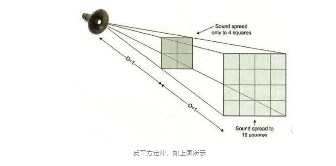 如果距離聲源的距離每增加一倍,那么聲功率就會(huì)減少為原來的四分之一,我想這一點(diǎn)很多人都是知道的。這一定律幾乎可以適用于所有的地方,無論是麥克風(fēng)還是揚(yáng)聲器陣列。了解這一定律,對(duì)于我們確定功率放大器所需的功率十分重要。