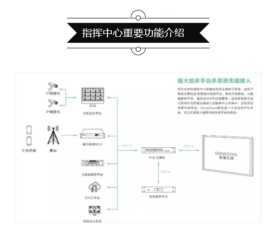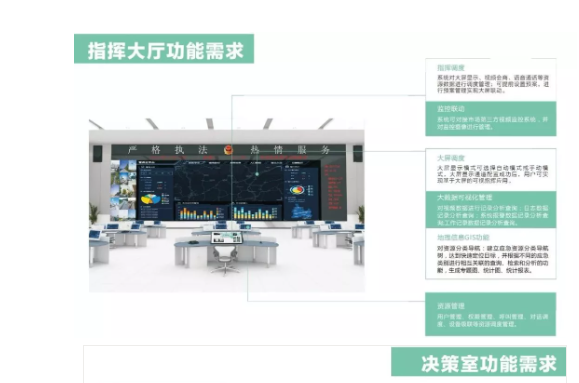 綜合指揮中心是一個(gè)集預(yù)案、視頻、圖片、語音、地理位置等信息為一體,以信息網(wǎng)絡(luò)為基礎(chǔ),各系統(tǒng)有機(jī)互動為特點(diǎn)的城市信息化基礎(chǔ)設(shè)施。通過集成的視頻監(jiān)控系統(tǒng)、GIS信息系統(tǒng)、網(wǎng)絡(luò)通訊系統(tǒng)和應(yīng)急聯(lián)動系統(tǒng)將公安、消防、衛(wèi)生、交通等應(yīng)急指揮與調(diào)度集成在一個(gè)管理體系中,通過共享指揮平臺和信息平臺,實(shí)現(xiàn)集中接警、及時(shí)研判、快速響應(yīng)、統(tǒng)一指揮和聯(lián)合行動。